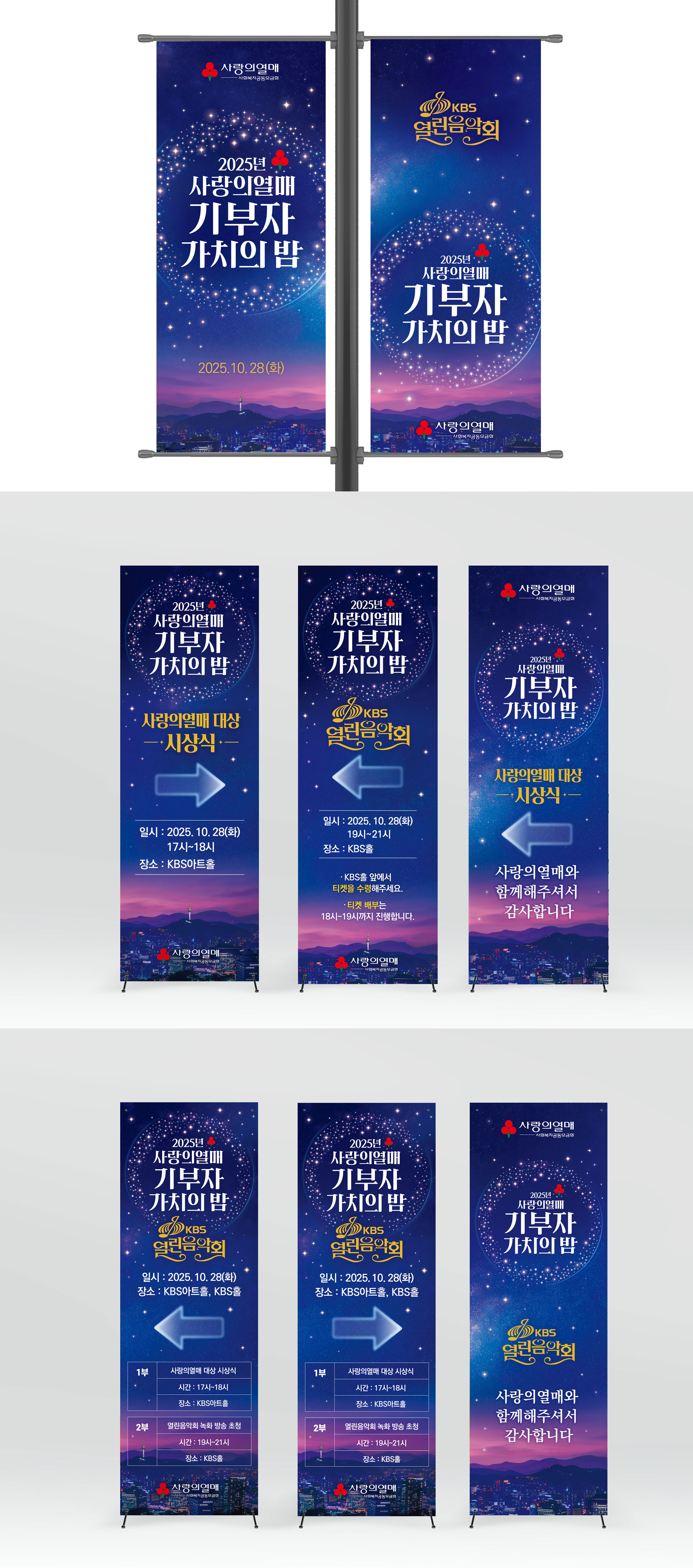 메인 키비주얼을 기반으로 행사장 전체에 일관된 시각 아이덴티티(Visual Identity)를 확립하였으며,